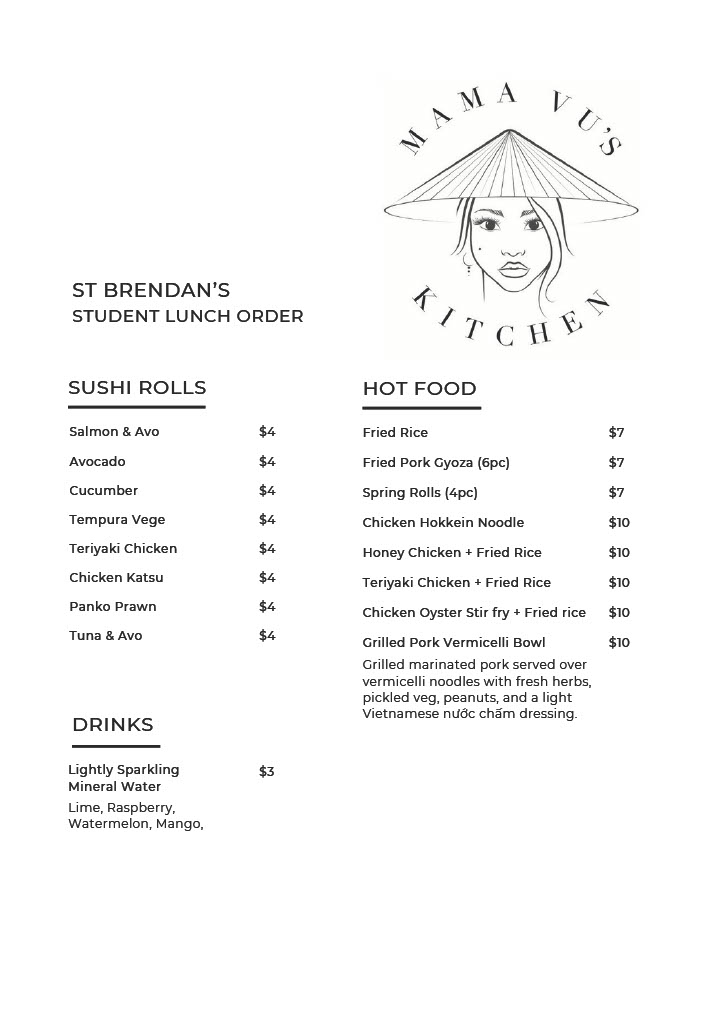 Lunch orders are available on a Friday and are supplied by Mamma Vu’s Restaurant.